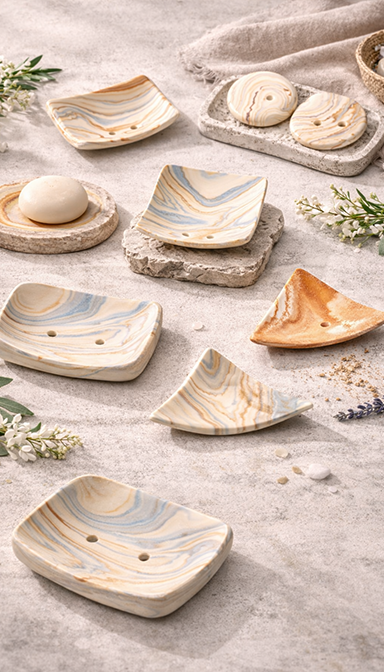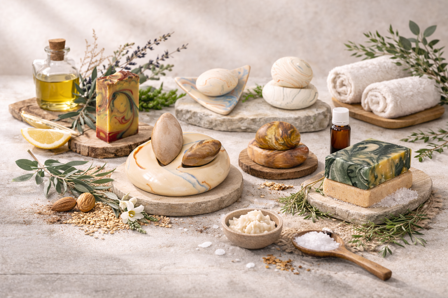 Savons, galets parfumés et accessoires — choisissez par besoin ou par envie.
