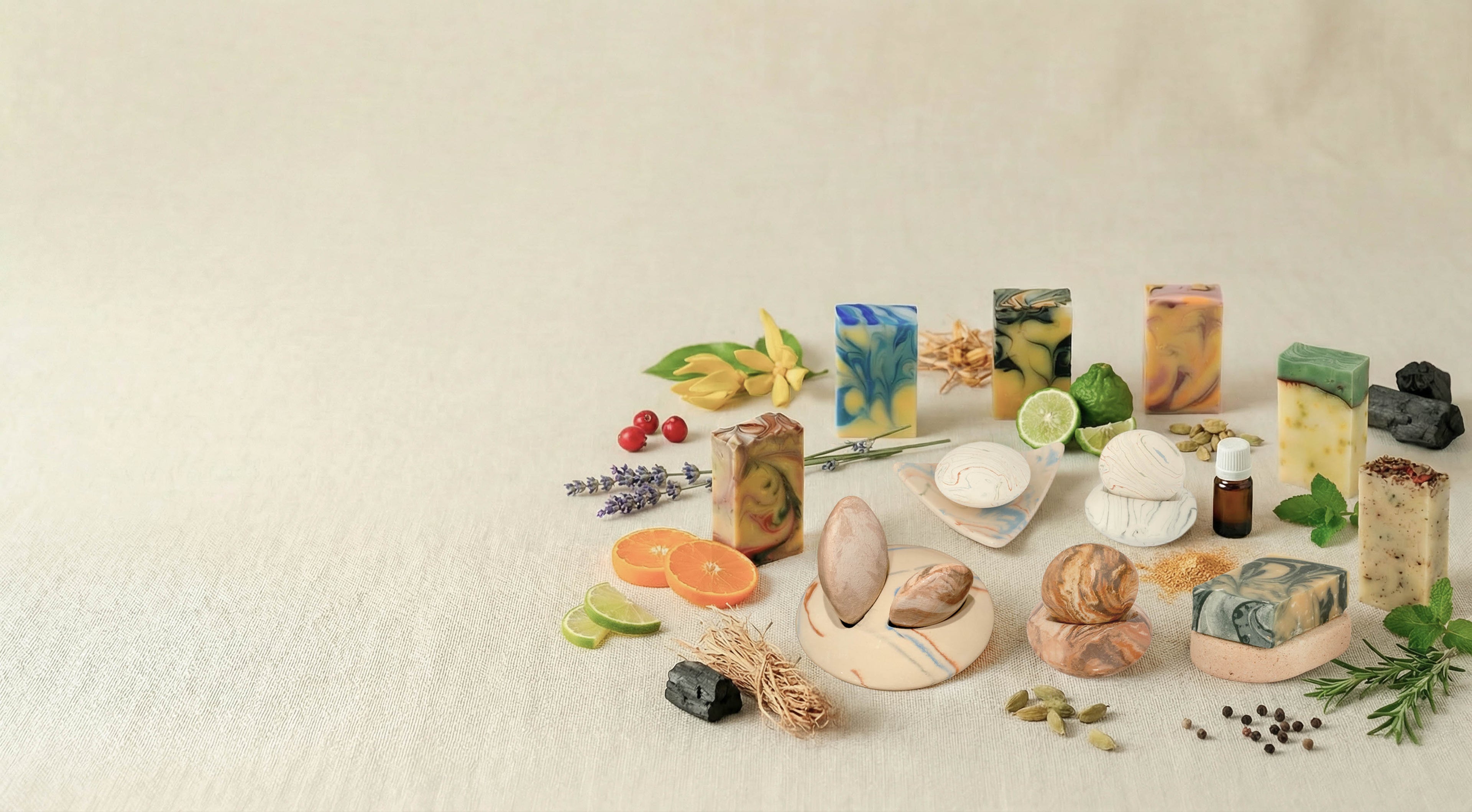Savons, galets parfumés et accessoires, choisissez par besoin ou par envie.