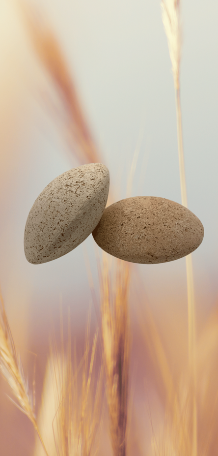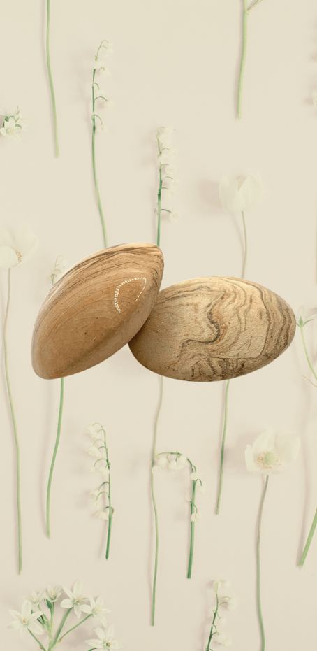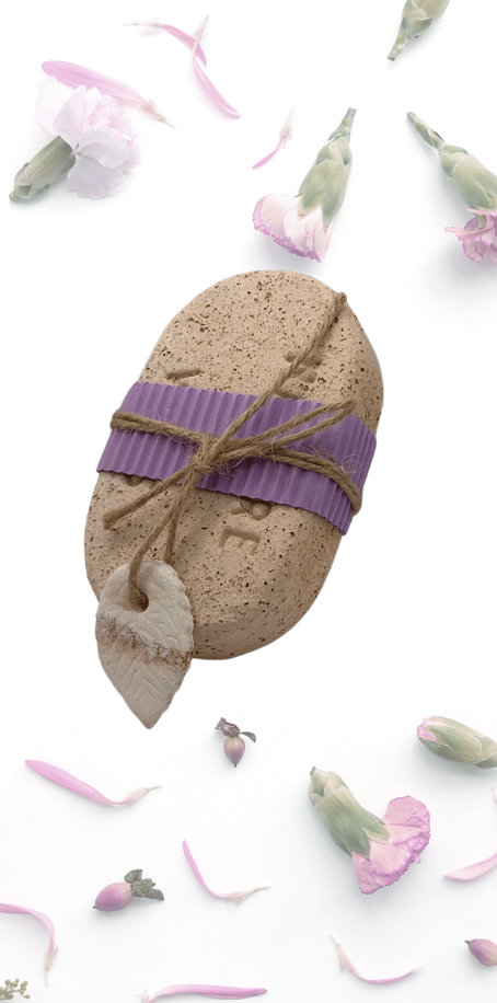 Petite pierre ayant 2 faces : un côté avec un grain très fin pour desquamer et un côté émaillé pour le massage.